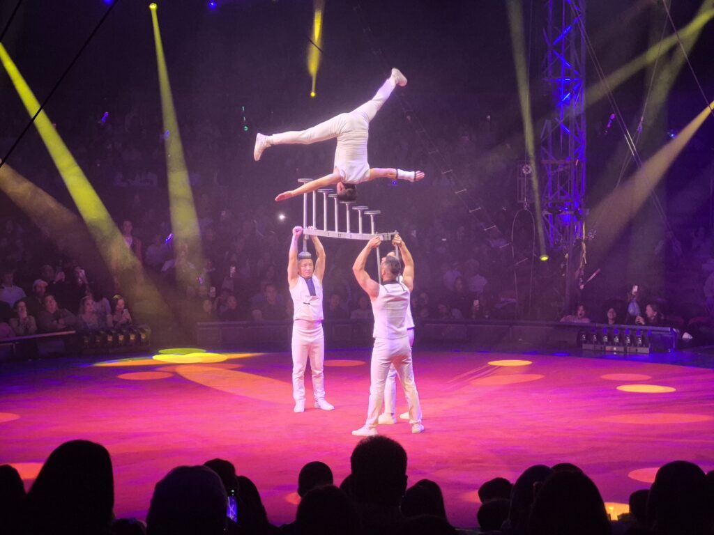 Een mooie uitvoering van de Icarian Games werd verzorgd door de Nicolody Brothers. De Flying Maluendas zorgden op de grote trapeze voor een 4 dubbele salto, ondanks de première spanning lukte het de 3e keer wat voor een daverend applaus zorgde. Ook de Zola Troupe wist op de teeterboard weer het publiek te verbazen met spectaculaire sprongen. De show geregisseerd door Joseph Bouglione was vlot, geen dode momenten, gigantische lichtshow en met een goed circusorkest.  De Bingo Troupe vond ik door het vele visuele geweld wat wegvallen. Maar de honden van Olate Family zorgden voor nog meer chaos waardoor het publiek totaal uit zijn dak ging. Ik heb mij zeer goed vermaakt al was het soms te uitbundig. Het was wel heerlijk om te zien dat de Vasquez familie verstand hebben van hun vak en hoe een mooie show neer te zetten. Dit bezoek was zeer de moeite waard en smaakte naar meer.